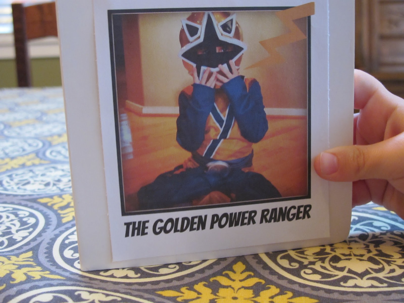 My little one is all about the Power Rangers. The “Golden” Power Ranger, specifically. We purchased the appropriate Power Ranger costume two months ago, and it was already pretty much worn out and almost too small by Halloween. I’m sure he’ll continue to wear it every day until the seams split, but since that may (hopefully) happen soon, we made a little book to remember his special outfit.