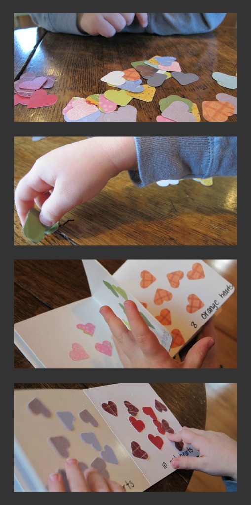 Here’s a heart-y activity to practice counting, colors and sorting.