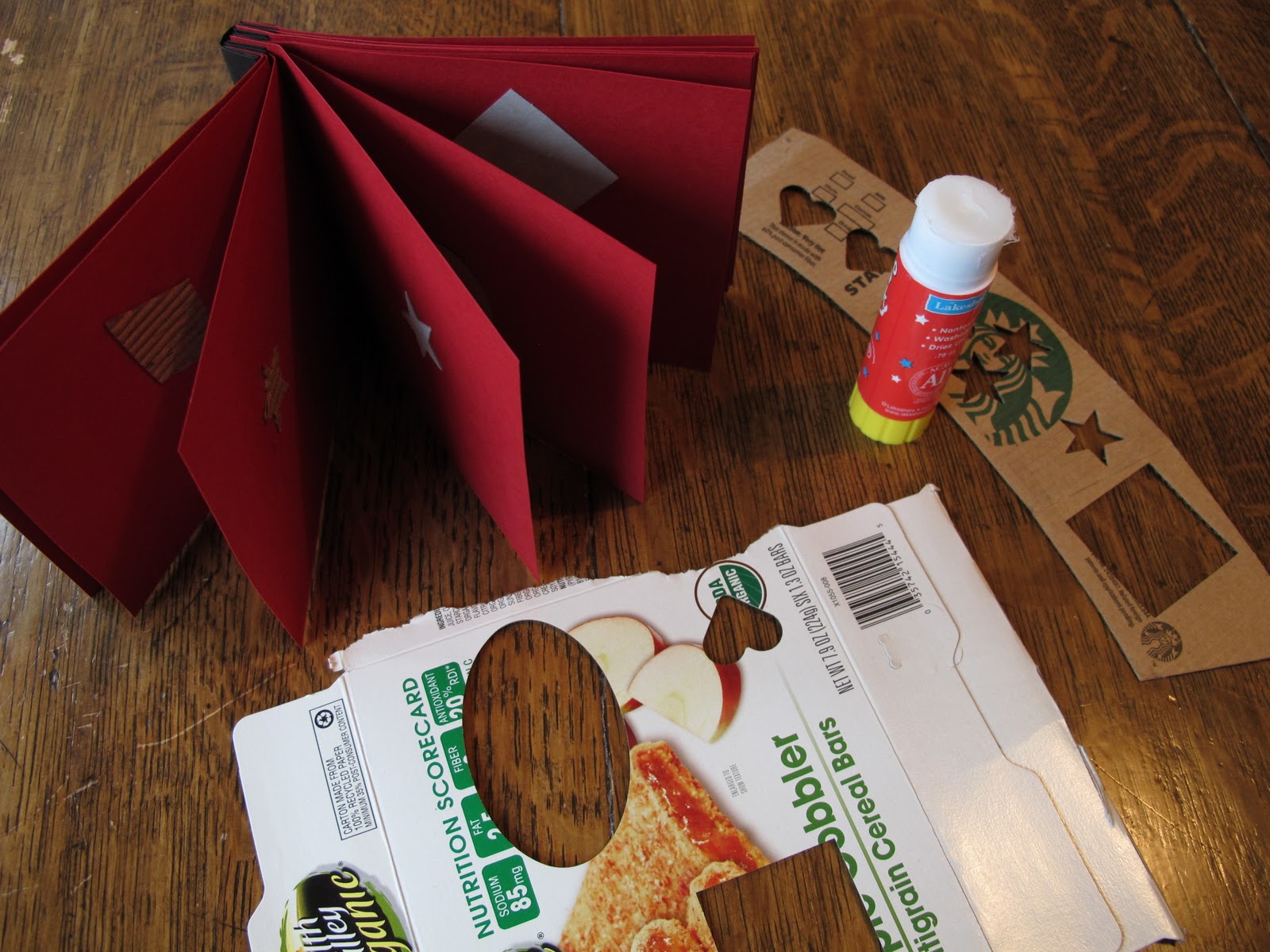 When I was preparing to recycle the cup from my last chai tea latte, or peppermint latte, or gingerbread latte, a new book making project popped into my head. For a way to reuse those corrugated cardboard sleeves, (and a way to justify way-too-many trips to Starbucks this month), read on…