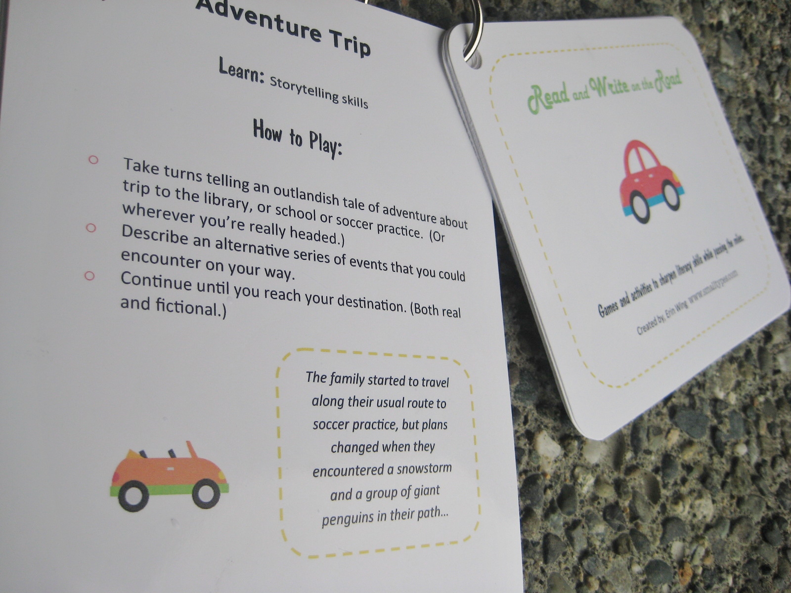 Directions are short and simple, so you can get the gist of the games while you’re parked and remember them long enough to explain them while you’re driving.