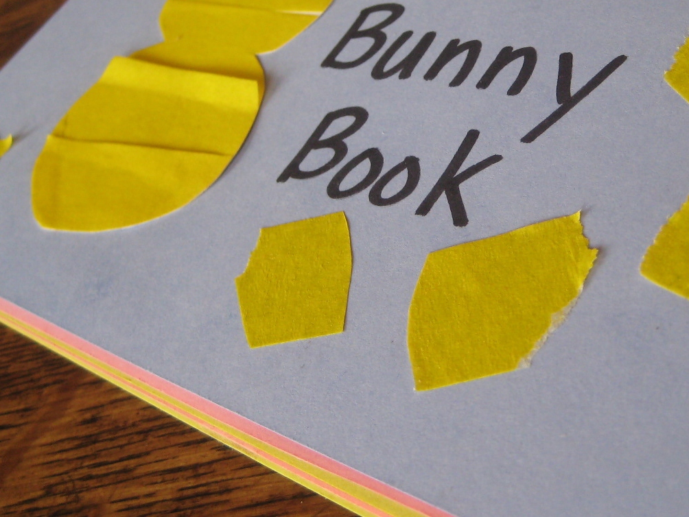 Note: We tried “artist” tape because I liked the yellow color and I thought it would stick the same as painter’s tape. I was wrong! It peels off very easily, so I’ll need to laminate these with contact paper to make sure the bunnies don’t disappear.