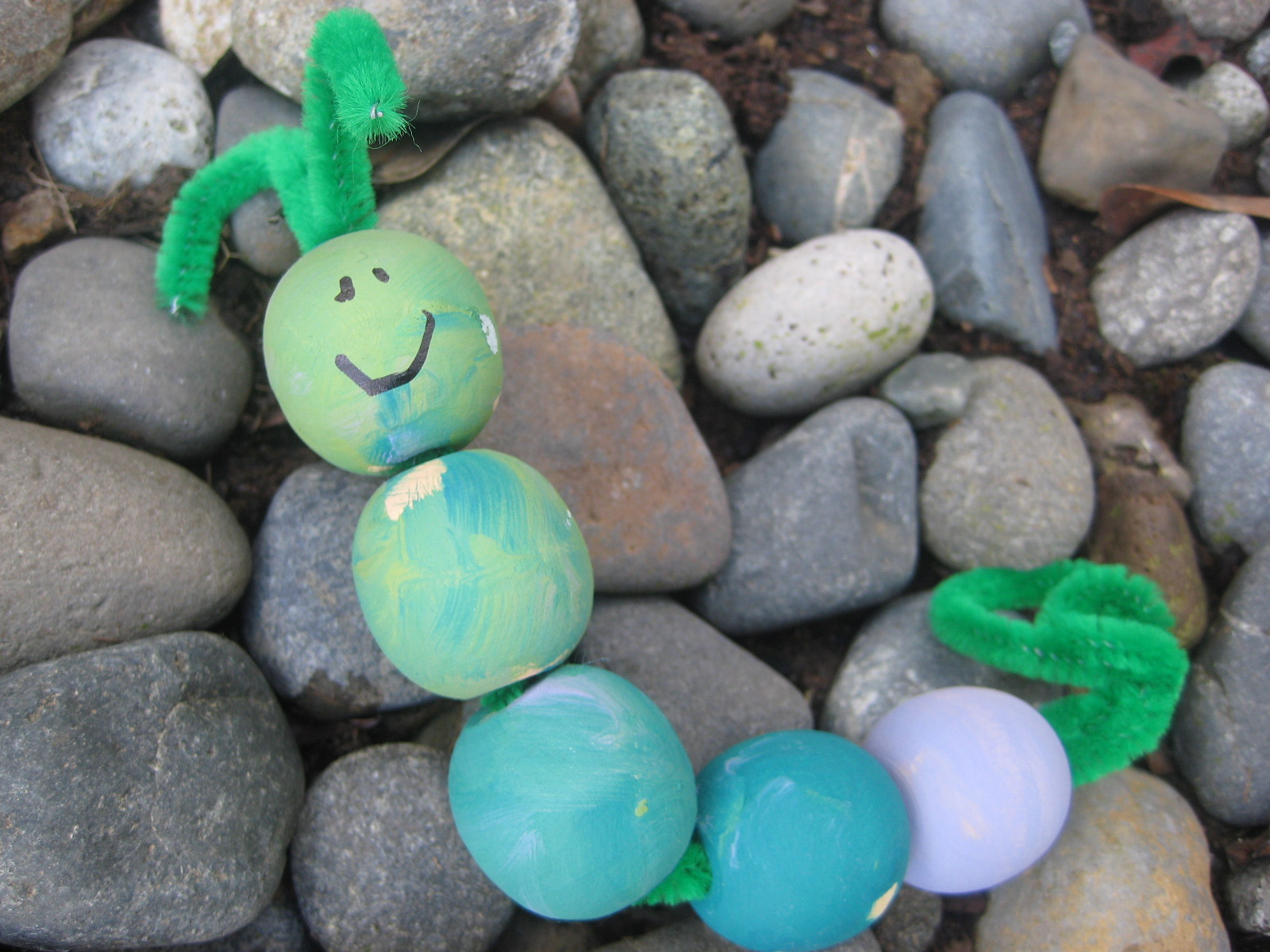 Paint one inch wooden craft beads and let them dry, string on a pile cleaner, bend the antennae and play! Our caterpillars immediately transformed from cute little bugs to giant Lego minifigure eating monsters. (Sorry, no photos of that.)