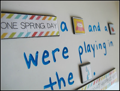 Kids can use the pictures and story words to tell their own spring stories. If you have a magnetic whiteboard, write words to complete the story. If you’re working on the fridge or another non-writable magnetic surface, just place the pictures and word magnets, then tell the stories orally, filling in the details as you go.