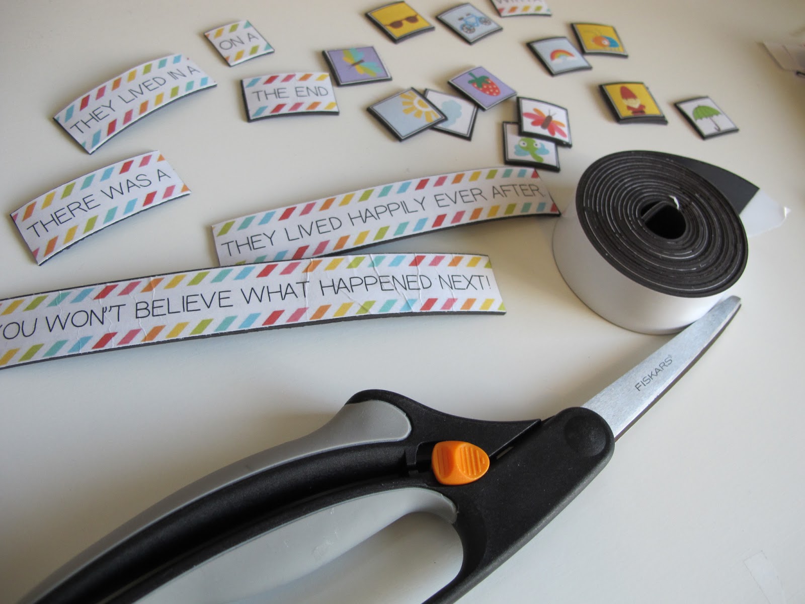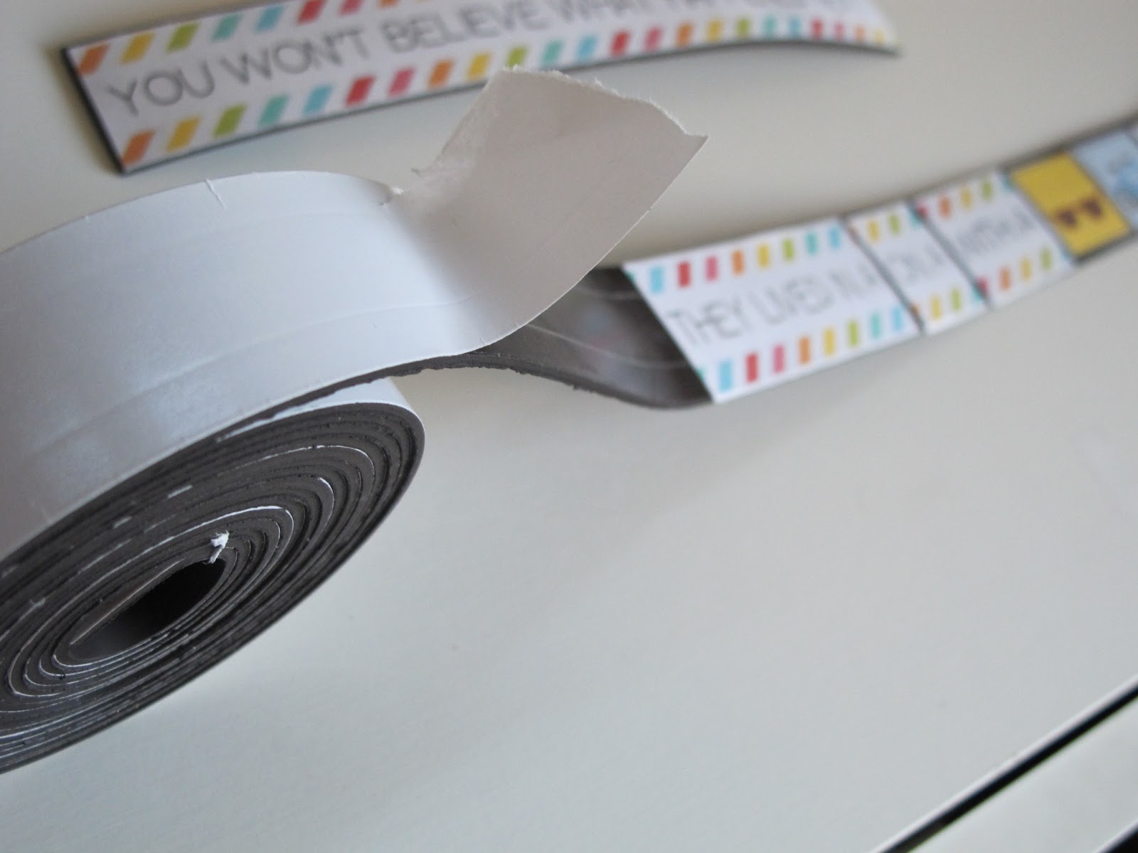 - Make sure your magnet roll is completely flat before attaching paper to cut down on paper creases. (As you can see, some of my longer pieces creased before I figured this out.) Printing on card stock also helps with this.