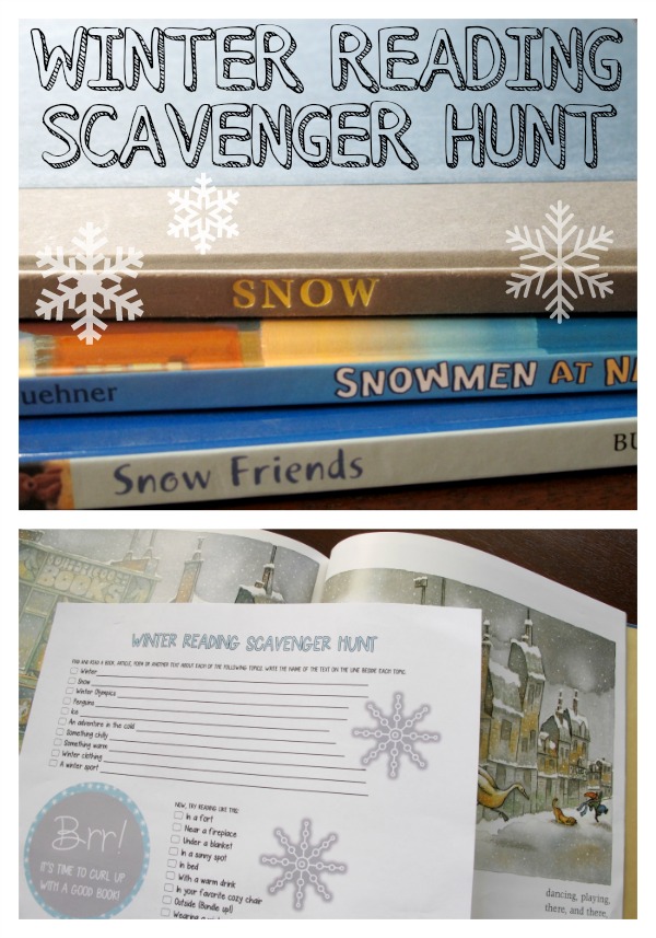 I’m ok with kids reading the same book a hundred times if they really love it, but for them to grow and develop as readers, they do need a little variety in their reading diet. One of my favorite super-simple ways to encourage variety is to do a reading scavenger hunt. You can make one to suit your family, or download my Winter Reading Scavenger Hunt here.