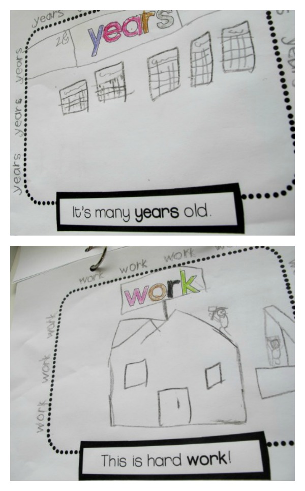 One of the main activities we’ve been doing is “picturing” the words. Paying attention to the visual “look” of the word, (the letters that make up the word and the word shape), and creating memorable images of the word.